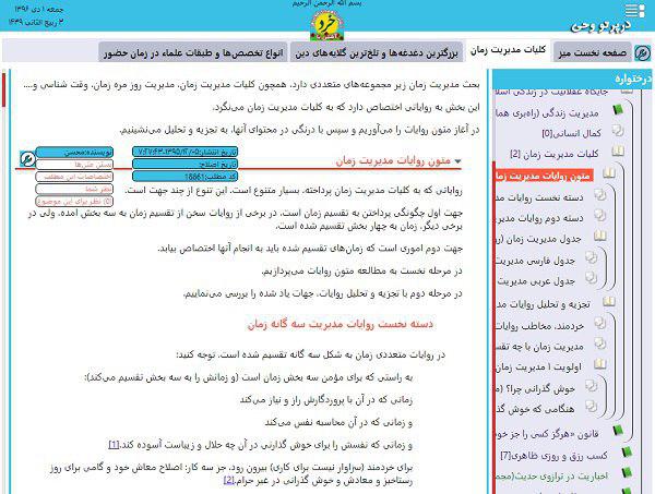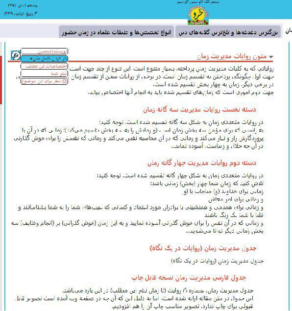 با انتخاب باز کردن خلاصه‌ها، سرفصلهای زیرمجموعه به همراه خلاصه‌ی آنها نمایش داده می‌شود. (تصویر شماره 3)