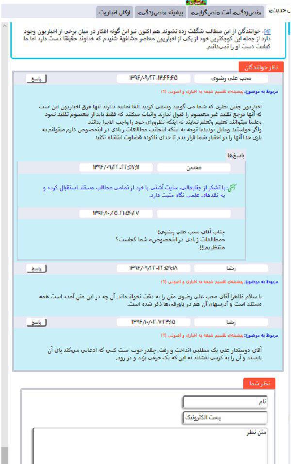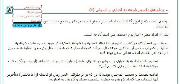 در این تصویر نشان داده شده که کاربران برای موضوع «پیشینه شیعه به اخباری و اصولی» سه نظر ارسال کرده‌اند.